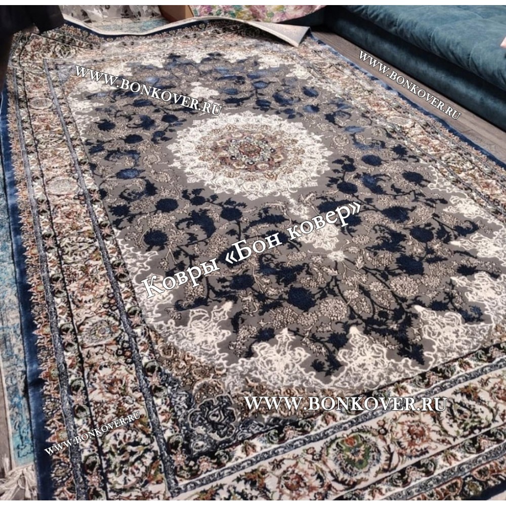 Шикарный Турецкий Ковер Для Медальон Дизайн 30573 Синий наполняет интерьер квартиры теплом и уютом, гармонично сочетает в себе изящество и красоту. Он соткан из износостойких материалов, комфортный и долговечный.